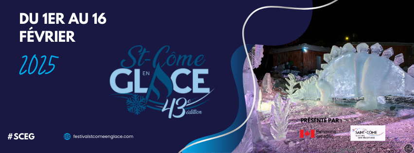 Du 1er au 16 février 2025, le Festival Saint-Côme en Glace revient avec des sculptures époustouflantes réalisées par plus de 150 artisans talentueux. Le long de la rue Principale, laissez-vous émerveiller par ces créations magiques en glace et neige, tout en profitant des spectacles en plein air et des animations familiales qui se déroulent chaque weekend.